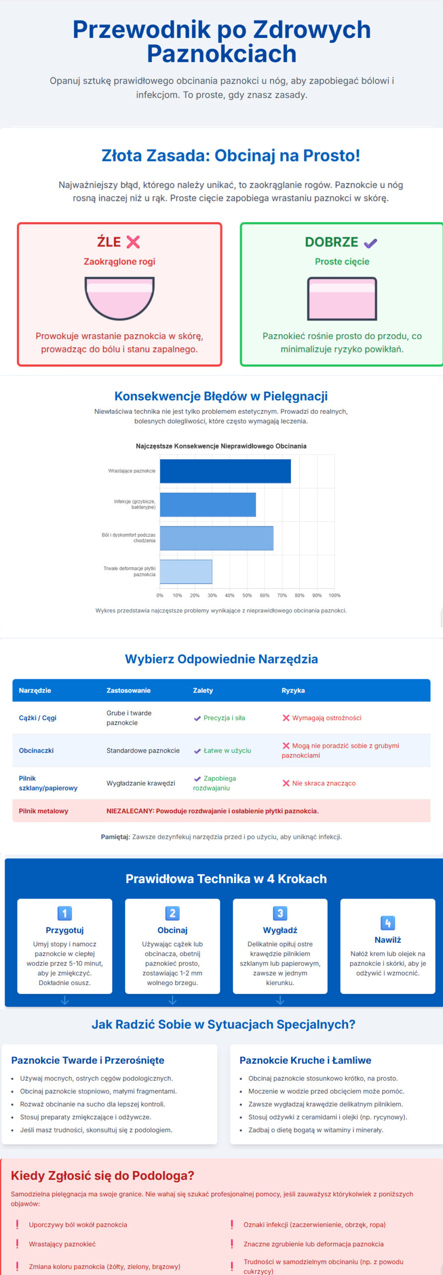 Jakich błędów unikać podczas obcinania paznokci u nóg i jakie są ich konsekwencje?